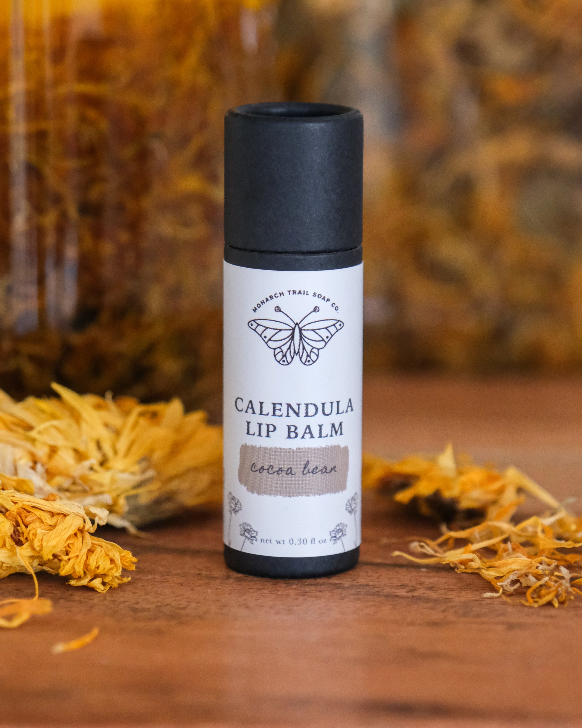 Each lip balm is made from organic calendula flowers infused into oils that are combined with beeswax to help seal in moisture. Organic beeswax acts as a conditioner and barrier when applied onto the lips, locking in moisture. Calendula flowers are known for relieving dry skin, irritation and discomfort. Naturally scented with pure and organic essential oils.