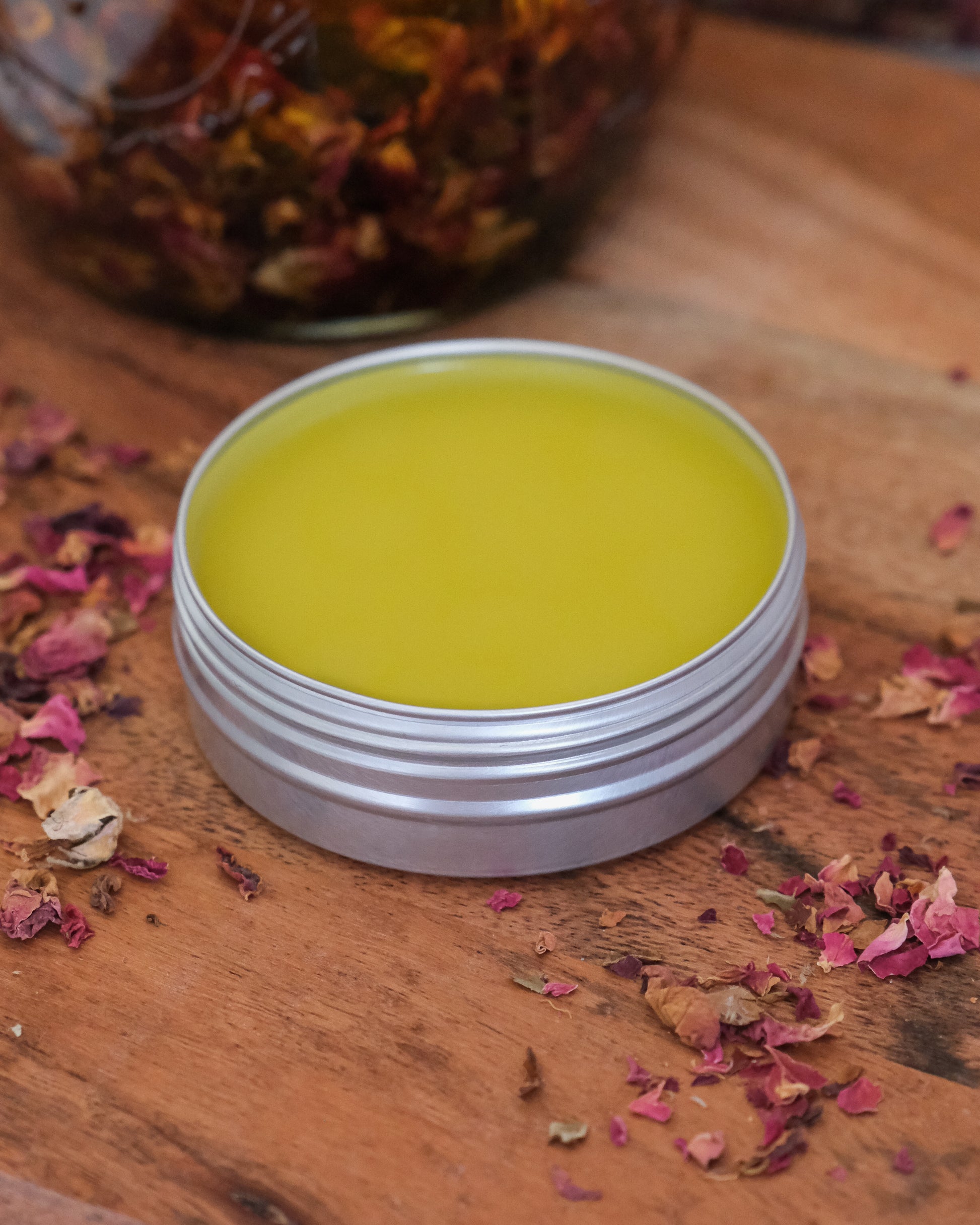 Our Rose Salve is made from organic roses infused into organic oils that are combined with beeswax to help seal in moisture. Rosehip seed oil, known for it's antioxidants and skin cell regeneration benefits, is added to provide extra hydration. Organic beeswax acts as a conditioner and barrier when rubbed onto the skin, locking in moisture.