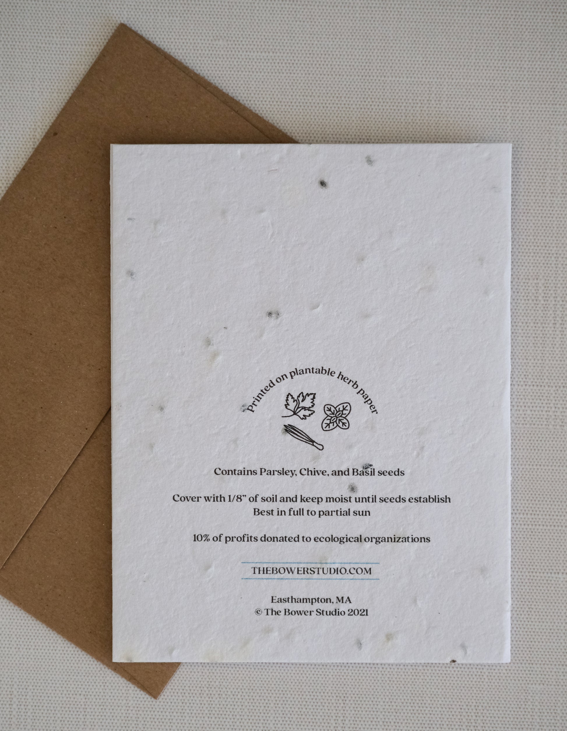 To plant your card, cover it with 1/8” of soil in full to partial sun and keep it moist until the seeds establish. With proper care, sprouts will emerge in 4-6 days.