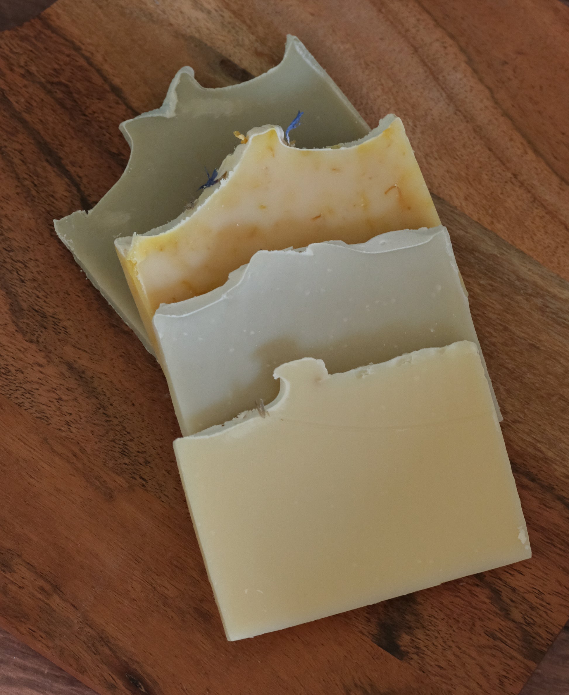 These soap ends come from each batch of soap that gets cut. Sometimes the edges aren't as pretty or have imperfections so they are trimmed off the ends. We hate to waste and they are just as great as our regular sized bars. Each soap is approximately 1/4 - 1/3 the size of our standard bars. The perfect size to try.